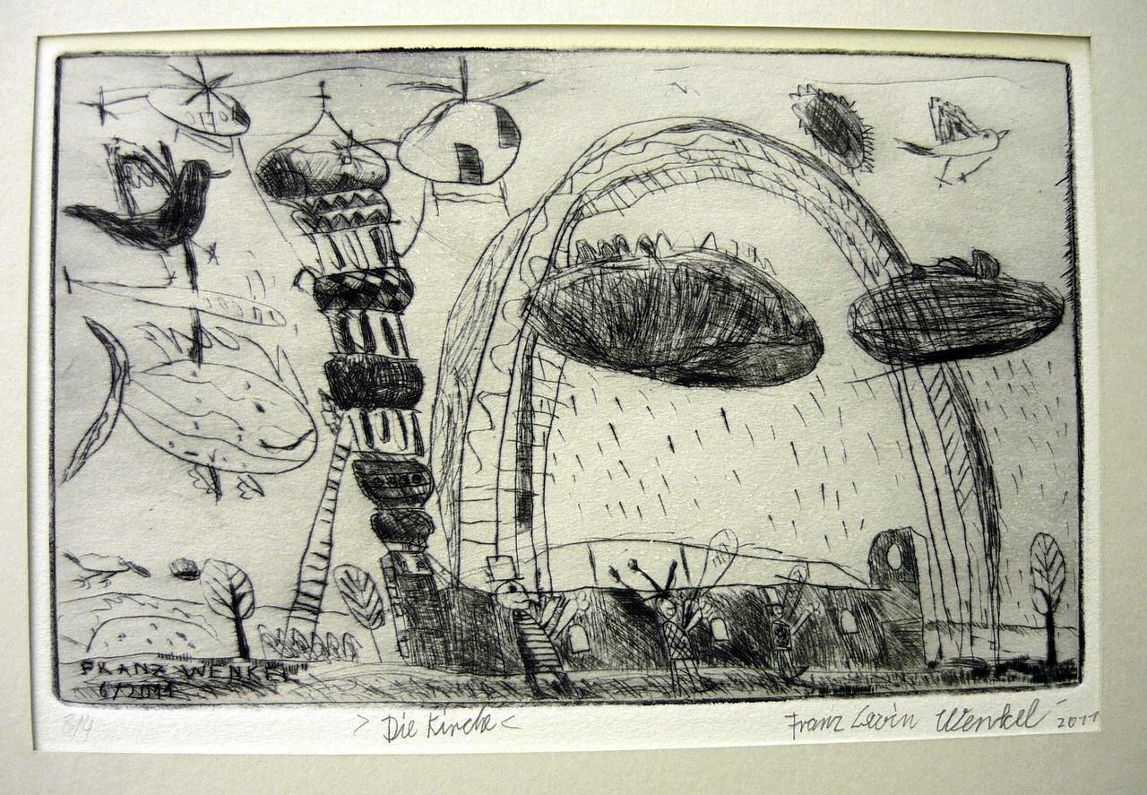 Franz Wenkel Die Kirche, Kaltnadelradierung von 2011