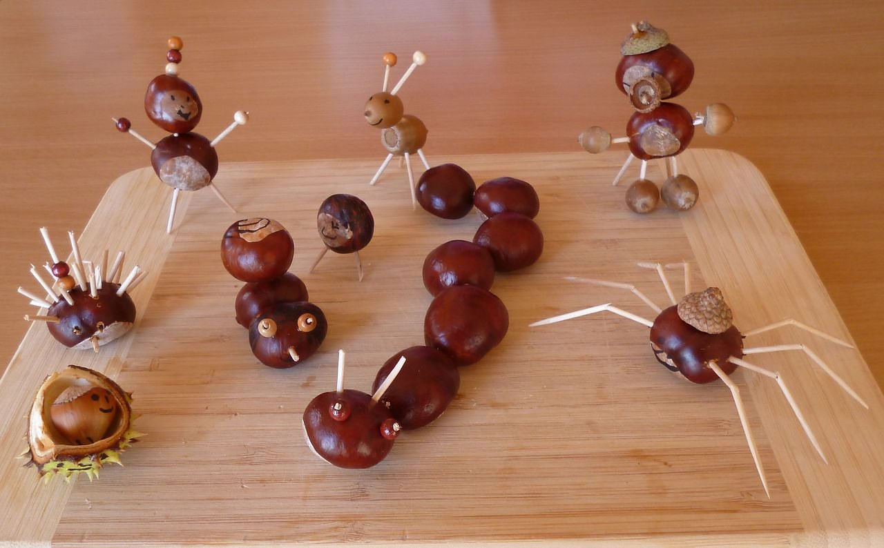 Die Zeit des Herbstes ist auch wieder die Zeit der Kastanien, die von den Bäumen fallen. Und wie das seit Generationen üblich ist, werden daraus viele schöne Dinge gebastelt...