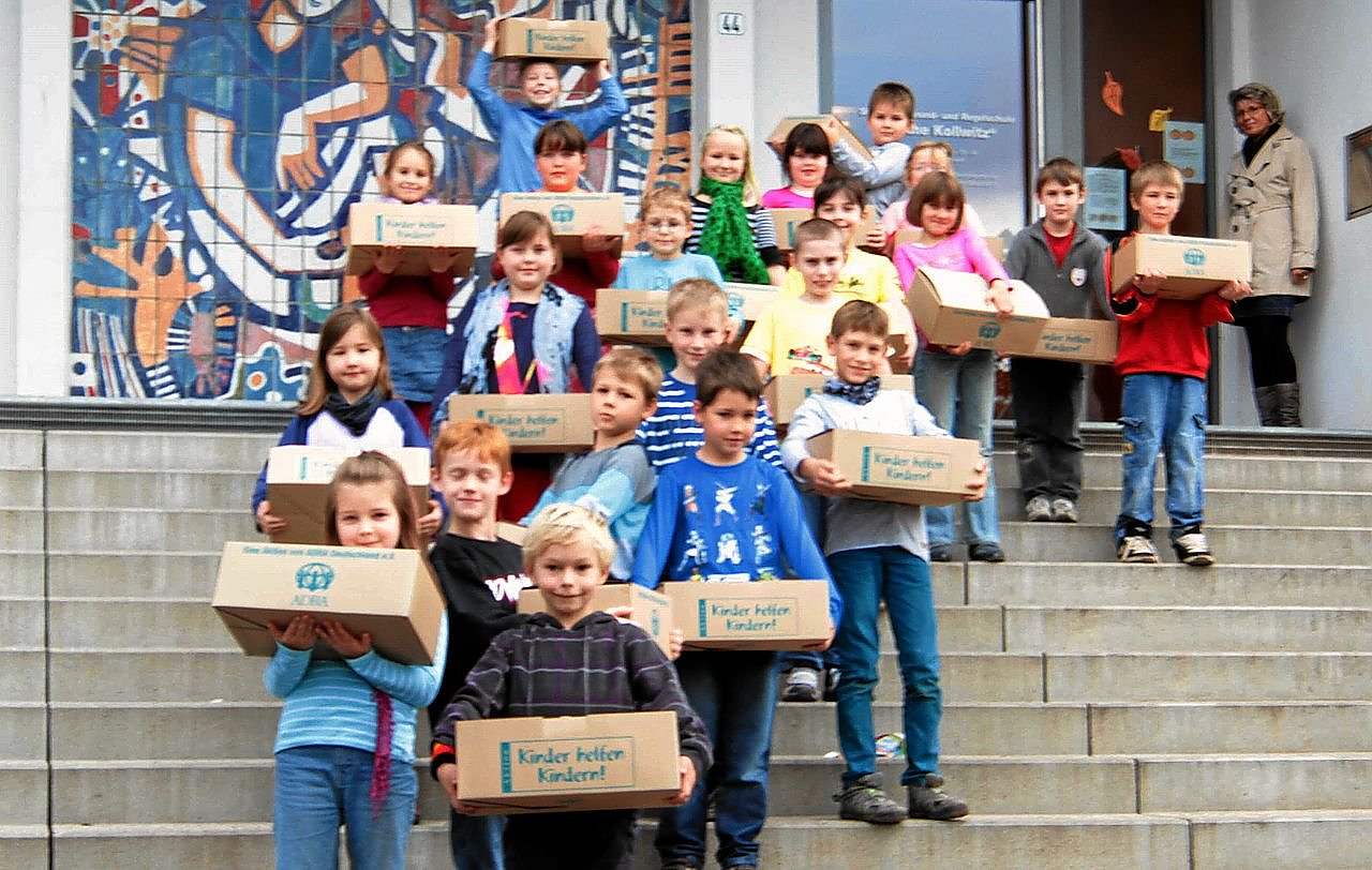 Begeistert hatten die Kinder der Käthe-Kollwitz-Schule mit ihren Eltern und Lehrern liebevolle Päckchen gepackt, um anderen Kindern Weihnachten eine Freude zu bereiten. In den Einrichtungen des Jugendsozialwerkes wird noch fleißig gesammelt und auch die Kinder der Grundschule Niedersalza sind beim Packen.