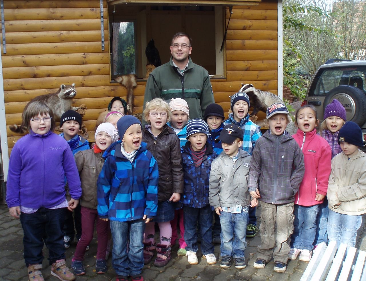 An einem herrlichen herbstlichen Mittwochmorgen tummelten sich 40 Kinder des DRK Kindergartens "Kinderspielkiste" in Niedergebra vor dem Waldmobil. Ausgestattet mit unzähligen Tierpräperaten und Schautafeln begeisterte der Bleicheröder Förster Michael Böhme die Kinder im Alter von vier bis sechs Jahren...
