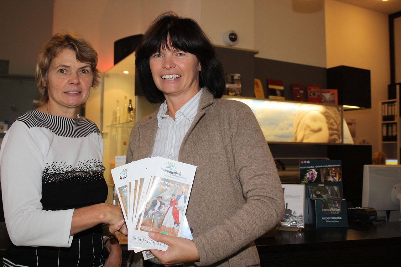 Der Thüringentag vom 7. bis 9. Juni wird der Veranstaltungshöhepunkt für unsere Region im kommenden Jahr sein, sagt Cornelia Kraffzick (rechts im Bild). Auch die Nordhäuser sind eingeladen mit zu feiern oder sich an unserem Programm zu beteiligen. Im Mittelpunkt der Festtage werden neben dem großen Festumzug, die Residenzkultur, die Musiktradition, der Bergbau und die Thüringer Vielfalt stehen. Mit unterhaltsamen und informativen Programmen sollen die Sinne der Besucher bei Mitmachaktionen auf den Straßen, Plätzen, Mottomeilen und Aktionsdörfern geweckt werden, so Frau Kraffzick.
