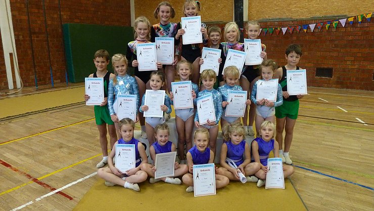 Unsere "Kleinen" haben fleißig trainiert und ihre Übungen zeigen können. Manchmal sollte es besonders schön werden und dann ging es doch daneben. Die Tageshöchstwerte gingen am Sprung an Maja Graul mit 12,10 und am Reck mit 10.35, am Balken an Marielle Herrmann mit 10,30 und Boden an Jana Hedderich mit 10,55 Punkten. Manchmal war die Aufregung besonders groß und es klappte dann in der Übung nicht so.