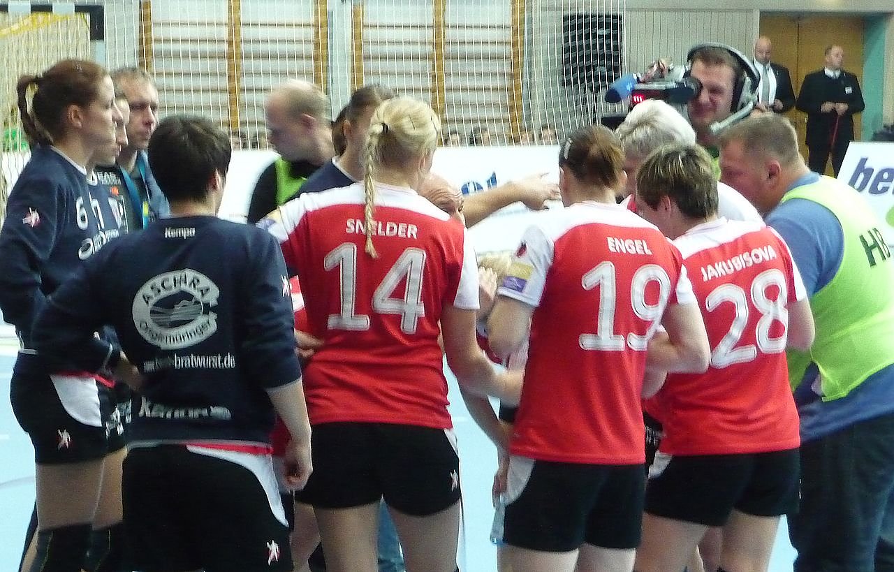 Das Tore-Schießen geht munter weiter, leider nur auf der Gäste-Seite. 1:6 in der 11. Minute. Zwei Minuten später ein 7-Meter: 1:7. Deutet sich hier ein Debakel an? Immer noch kein Tor aus dem Spiel heraus. In der 14. Minute fällt es dann durch Lydia Jakubisova – 2:7. Im Gegenzug das 2:8, 40 Sekunden danach das 2:9. Dann das dritte Tor der Thüringer durch Ana Gros – 3:9. Jetzt hält Maike März wieder. Sie ist in der 18. Minute geschlagen. Nahezu unbedrängt kommt eine Russin zum Torwurf – 3:10. Einen Spielzug später das 4:10 durch Kerstin Wohlbold. Nur eine Minute später wieder Wohlbold zum 5:10. März hält wieder – ist das die Wende?