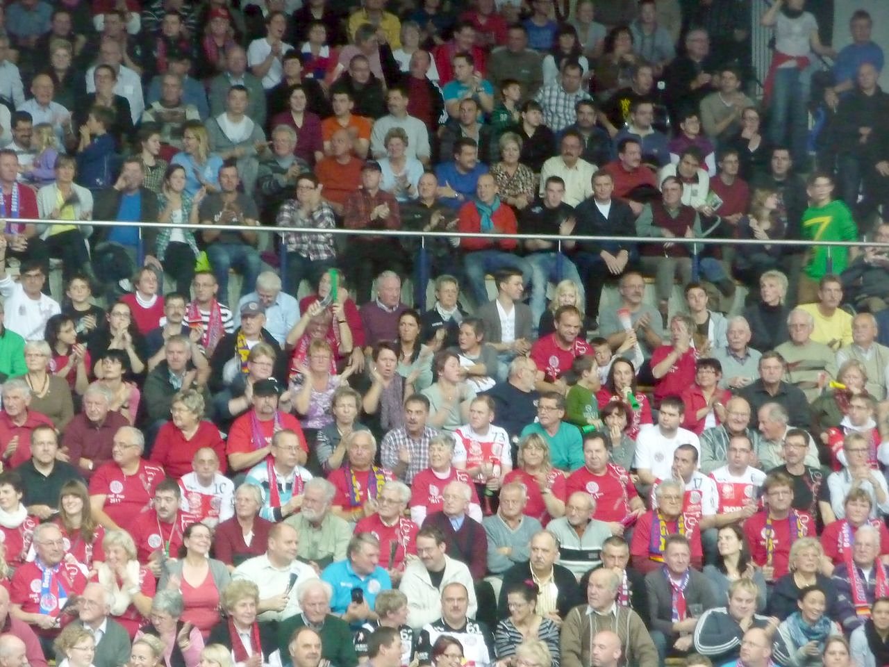 Thüringen rückt zusammen, dieser Spruch des Hallensprechers, ist symbolisch für das Spiel. Die Zuschauer auf den Tribünen rücken zusammen, immer noch stehen die Fans vor der Halle, das wird ein Fest für die Freunde die europäischen Spitzenhandballs. Die Mannschaften laufen ein.