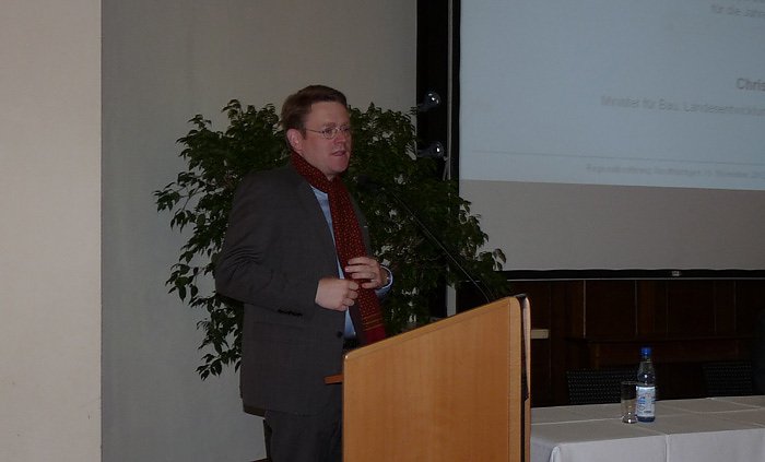 Autor: khhDurch die intelligente Verknüpfung von Straße und Schiene und die Vertaktung des Schienennahverkehrs mit dem Fernverkehr werden wir den Öffentlichen Personennahverkehr (ÖPNV) in Thüringen stärken. Hierfür brauchen wir eine enge Abstimmung mit den kommunalen Trägern des ÖPNV. Deshalb beteiligt das Verkehrsministerium erstmals durch Regionalkonferenzen in allen Landesteilen eine breitere Öffentlichkeit bei der 3. Fortschreibung des Thüringer Nahverkehrsplans, sagte heute (Montag) der Minister für Bau, Landesentwicklung und Verkehr, Christian Carius (Foto unten), auf der Regionalkonferenz Nordthüringen zur Fortschreibung des Thüringer Nahverkehrsplanes in Sondershausen.