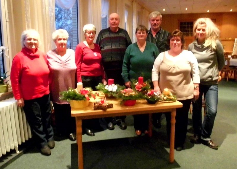 Nach einer Stärkung bei Kaffee und Kuchen fertigten sie dann unter der Anleitung der Floristin Tina Dünnhaupt Adventsgestecke an und hatten viel Spaß dabei. Sie schmücken nun in der Vorweihnachtszeit die Wohnzimmer.