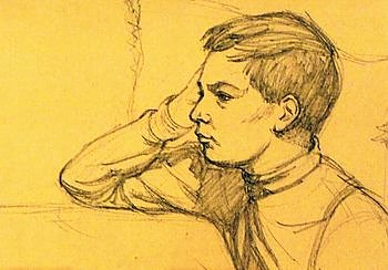In der Görsbacher Ausstellung fallen dem Besucher auch Bilder auf, die man als Studienblätter bezeichnen kann, darunter ein nicht mehr junger schlanker Mann mit freiem Oberkörper. Man erkennt auch an diesem Blatt Eva Grohs genaue Beobachtungsgabe, hier insbesondere, was die menschliche Figur betrifft. Deutlich wird das auch auf einem Skizzenblatt aus ihrer Studienzeit. Deshalb verwundert es nicht, sie als sensible Porträtzeichnerin zu entdecken. Genannt sei eine Zeichnung von ihrem Mann in jungen Jahren und die ihres Sohnes Rainer als Kind, als er voller Gespanntsein, in der Sofaecke sitzend, im Fernsehen die amerikanischeWesternserie Rauchende Golts anschaut.