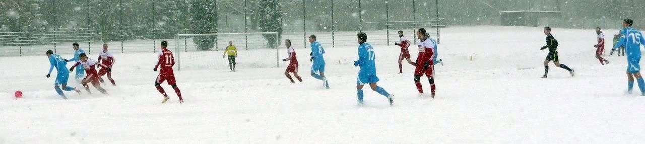 Autor: redZur Beschreibung des Wetters: Nach stundenlangem Schneefall war ein Drittel des Kunstrasenplatzes einigermaßen vom Schnee befreit, der Rest war knöchelhoch bedeckt.