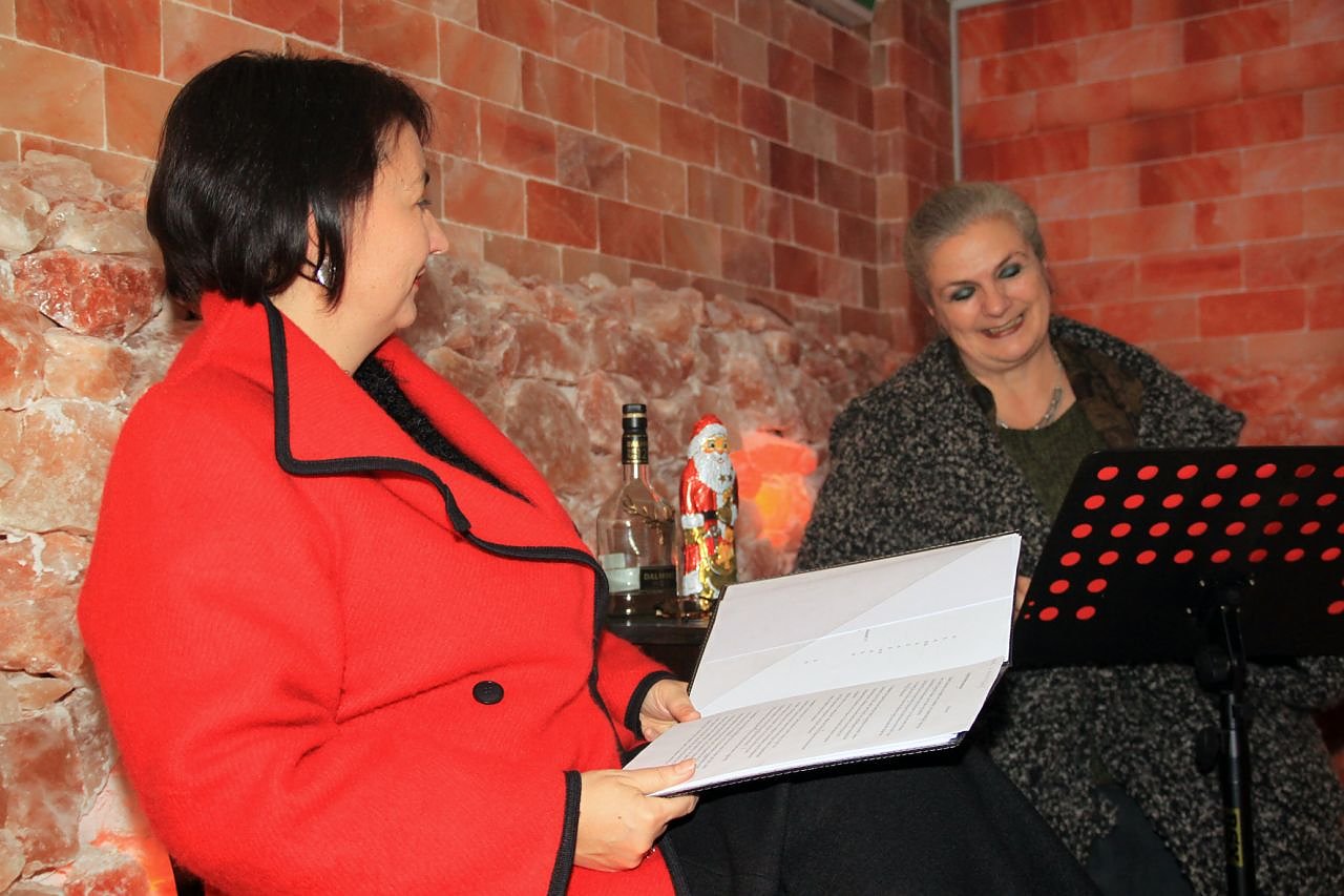 Apothekerin Kathrin Mucke lud die Chefdramaturgin des Nordhäuser Theaters und die Leiterin des Kunsthauses Meyenburg in die gesundheitsfördernde Grotte ein um dort ihre Kunden mit einer Einstimmung auf die Weihnachtszeit der etwas anderen Art zu verwöhnen. Und das gelang auf ganzer Linie: Verflixte Fehler, trunkene Backrezepte oder versengte Krippenfiguren sorgten beim Publikum für heitere Unterhaltung und eine fröhliche Flucht aus dem vermutlich bis zum 24. Dezember andauernden Vorweihnachtsstress.