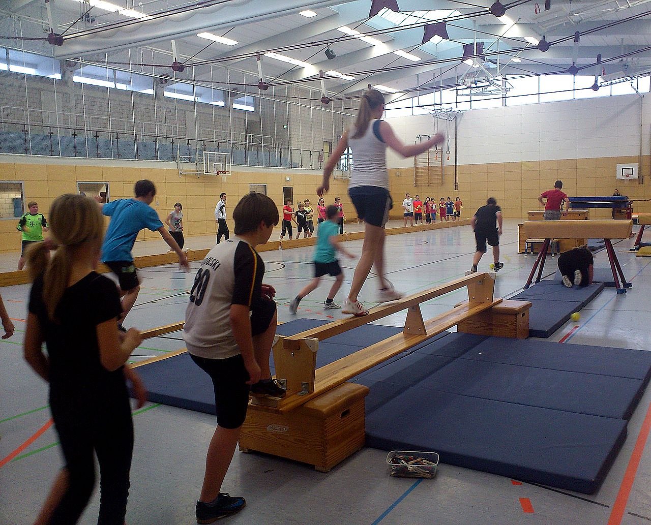 Diesmal versperrten jede Menge Großgeräte den Weg: Ein Hindernislauf à la Takeshis Castle unter Leitung des Lehramtsanwärters Thomas Petzold stand auf dem Programm. Die Punkte für die Mannschaftswertungen waren dabei in allen Klassenstufen hart umkämpft.