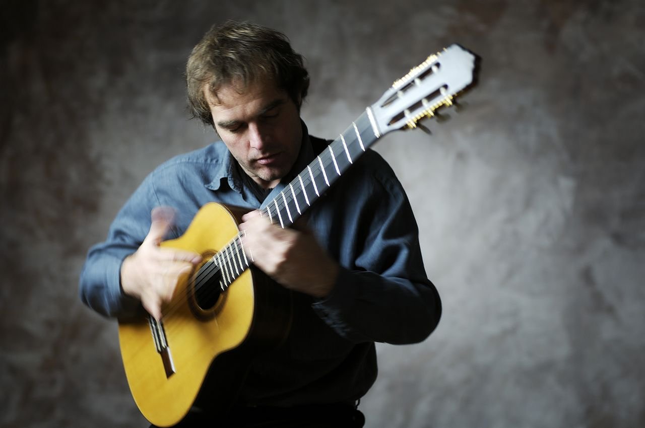 Darüber hinaus komponiert der Weimarer Gitarrist für Film und Fernsehen, realisiert Klangkunstinstallationen und arbeitet mit international renommierten Musikern in verschiedensten Projekten zusammen. Lassen Sie Ihre Gedanken auf Reisen gehen bei magischen Klängen voller Fantasie, Rhythmus und Imagination und schauen Sie dabei einem Virtuosen zu, der mit Händen und Füßen leidenschaftlich musiziert. Eine Musik, die uns vertraut erscheint und gleichzeitig ganz neu und unverwechselbar ist – gefärbt von Klassik, Flamenco, Jazz, Mittelalter und Exotik. Musik, die tief berührt und weit entführt!