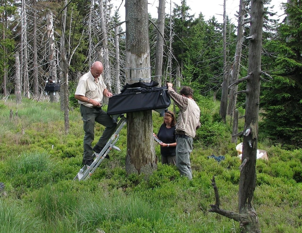 Autor: redAufbau eines Stammeklektors – ein stammumschließender, nur nach unten offener Sammler, im Regelfall mit vier Kopfdosen und vier Fangbehältern am Boden, zum Fang stammaufwärtslaufender Tiere.