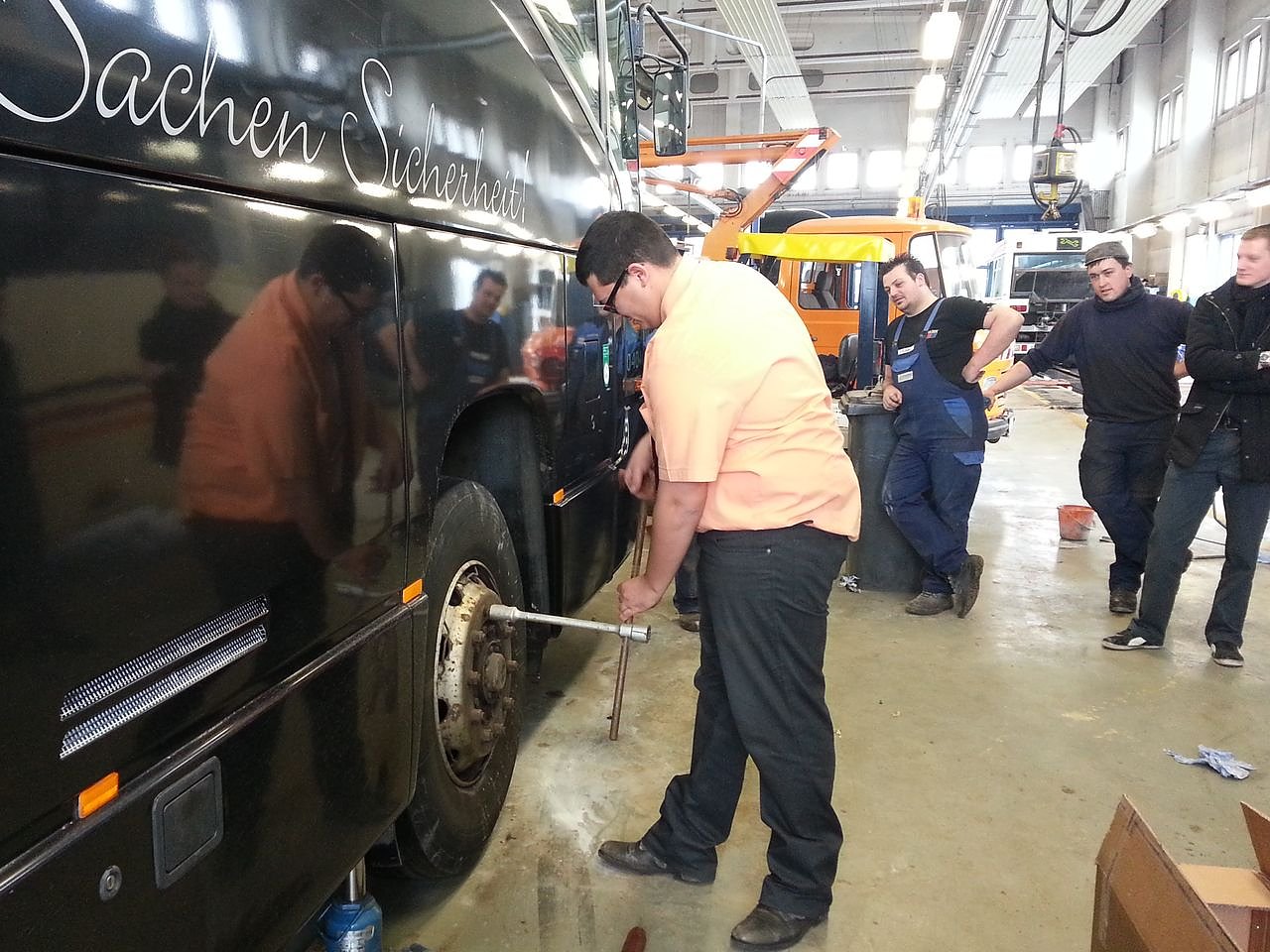Die Arbeiten in der Werkstatt sind vielseitig. Öl-, Ölfilter-, Reifen- und Keilriemenwechsel sind Alltag in der Werkstatt. Auch eine zukünftige Fachkraft im Fahrbetrieb muss im Notfall kleine Reparaturen am Bus oder eine Reifenpanne selbständig beheben können, teilte Stefan Länger, Ausbilder bei den Nordhäuser Verkehrsbetrieben, mit.