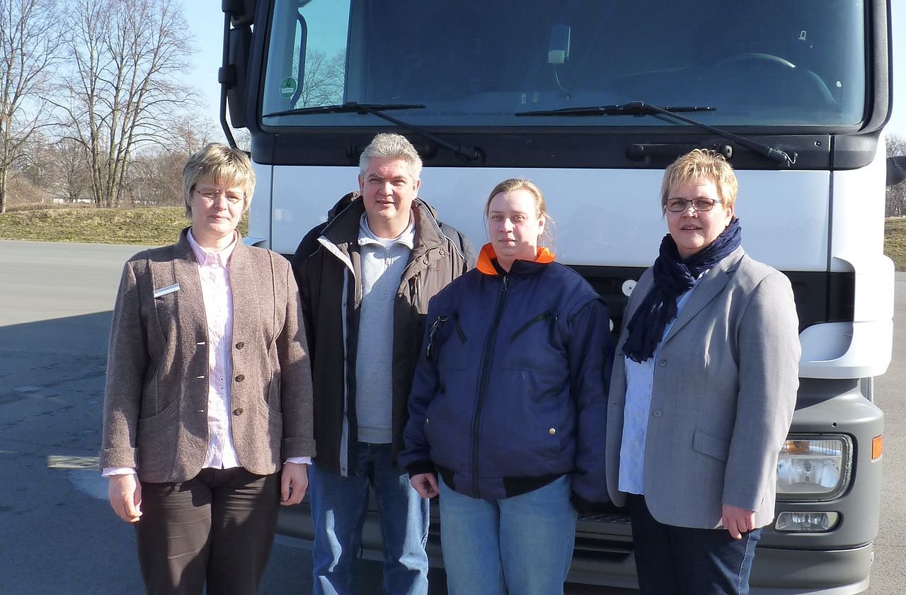Autor: redVon links: Meike Bauermeister (Teamleiterin Arbeitgeberservice), Frank Kube (Betriebsleiter Fa. Redemann GmbH), Birgit Thom (Berufskraftfahrerin Fa. Redemann GmbH) und Manuela Gorges (Beauftragte für Chancengleichheit am Arbeitsmarkt)