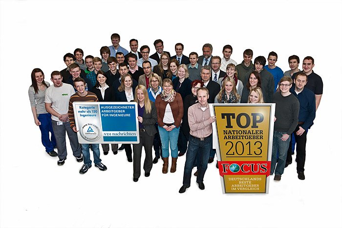 Mitarbeiterinnen und Mitarbeiter sowie Auszubildende am Standort Minden freuen sich über die buchstäblich ausgezeichnete Arbeitgeber-Attraktivität.