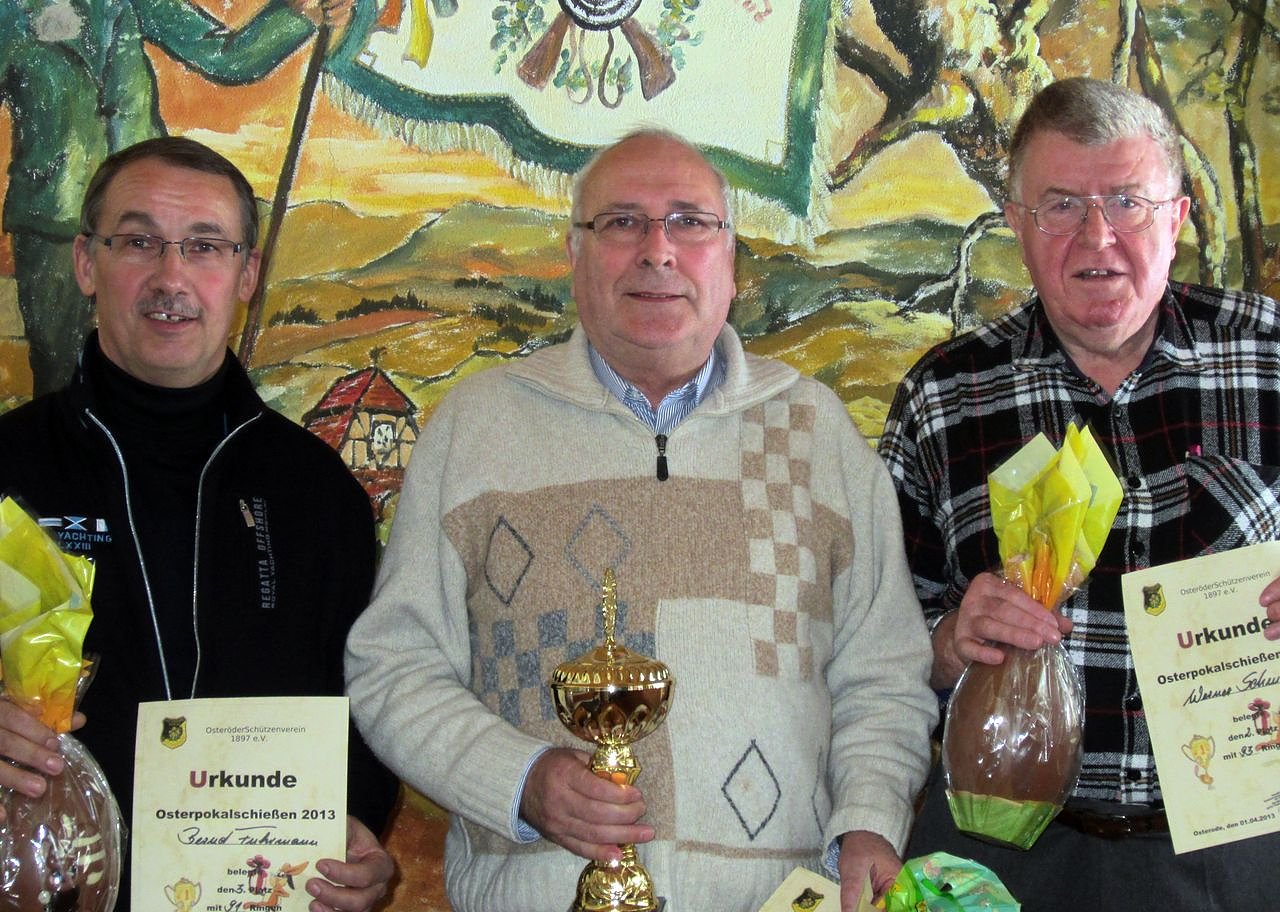 Autor: redBester Schütze im Pokalschießen wurde Klaus Heinemann (Mitte) vom Osteröder Schützenverein, den zweiten Platz belegte Werner Schmidt (rechts) von der Nordhäuser Schützenkompanie, Dritter im Wettkampf wurde Bernd Fuhrmann vom Osteröder Schützenverein (links).
