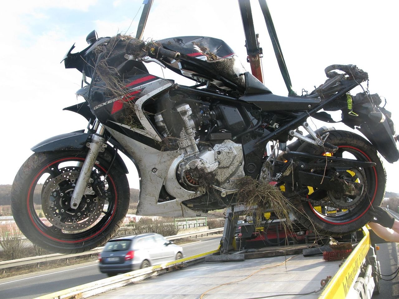 Seinen 28. Geburtstag diese Woche darf der aus Halle stammende Suzuki Fahrer wohl gleich zwei Mal feiern. Gestern Abend verlor dieser auf der A 9 bei Eisenberg im Abschluss eines Überholvorgangs die Kontrolle über sein Zweirad und kam nach rechts von der Fahrbahn ab. Dort überschlug er sich mehrfach im angrenzenden Straßengraben-/Böschungsbereich. Man muss von großem Glück reden, dass gerade an dieser Stelle keine Leitplanke den abfliegenden Kradfahrer aufgehalten hatte, denn dann sähe das Ergebnis mit Sicherheit anders aus. Das Motorrad im Wert von rund 5000 Euro ist natürlich Schrott.