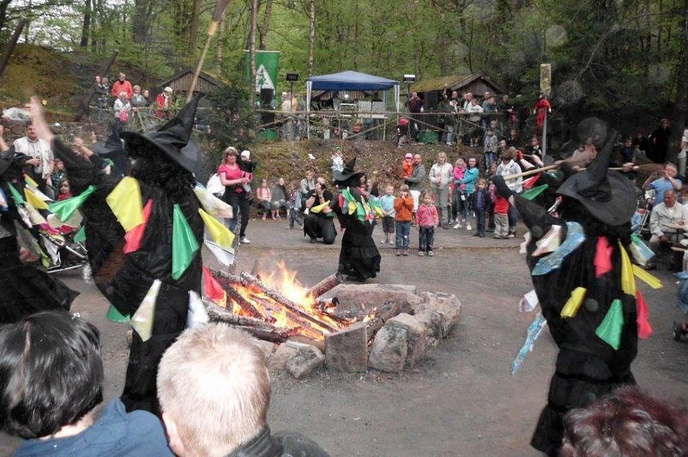 Der Volkschor Neustadt besingt den Frühling mit neuen und alten Liedern. Wenn es dunkel ist, wird es mystisch auf dem Grillplatz. Das Walpurgisfeuer wird angezündet, und auf der Felsenbühne erfolgt eine Feuershow.