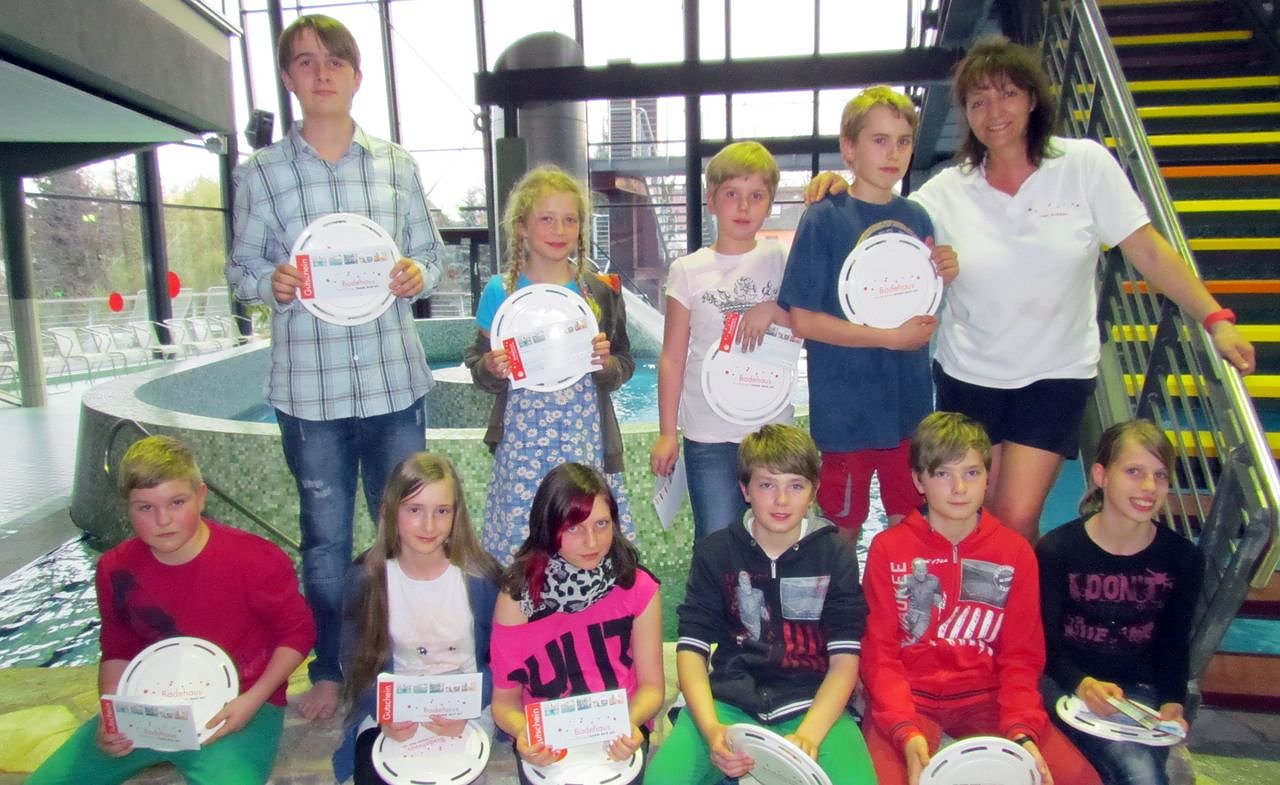 Die Spielleiterin Ines Bröder bedankte sich bei den sportlichen Kindern und neben einem Badegutschein erhielt jedes Kind eine Badehaus-Frisbee-Scheibe. Insgesamt nahmen über 300 Kinder an den Wettbewerben teil, die in den Ferien für viel Spaß im und am Wasser sorgten.