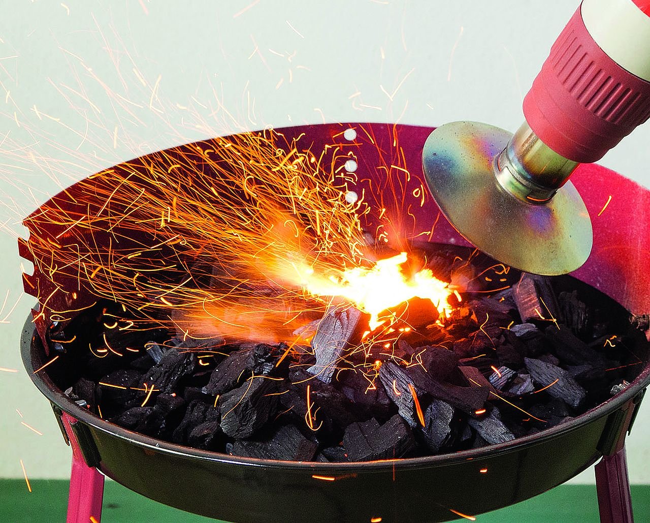 Heißluft-Grillföhn: Heiße Luft entzündet die Holzkohlen, kalte facht die Glut weiter an.