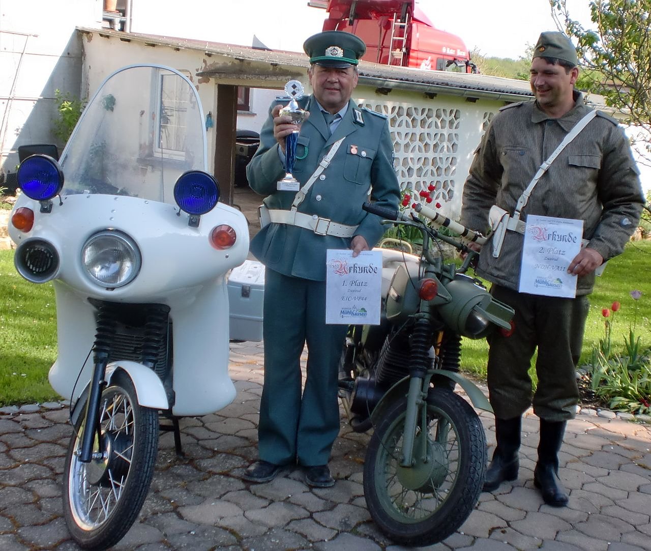 Selbstverständlich war es dann auch so, dass nach den abgeschlossenen Restaurierungen, die dazu gehörigen Uniformen und Ausrüstungsgegenstände beschafft werden mussten. Rund um zufrieden mit ihren Leistungen, präsentierten sich nun Vater und Sohn beim diesjährigen Treffen der Trabant- und IFA Fahrzeuge in Mühlhausen einer Jury von Oldtimerexperten.