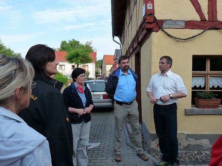 Vom Sondershäuser Heimat- und Geschichtsverein Jechaburg e.V. erläuterte dessen Vorsitzender Uwe Lüttkopf (hier vor dem Vereinshaus) die wechselvolle Geschichte von Jechaburg und der Kirchen. Im 14. Jahrhundert wurde in Jechaburg eine dreischiffige Stiftskirche gebaut, die nach Zerstörung im Jahre 1726 durch eine neue Kirche ersetzt wurde.
