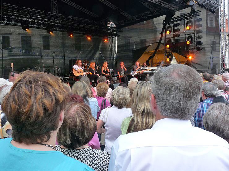 Wer nicht rechtzeitig vorn stand, der bekam Ute Freudenberg nur von Weitem zu sehen und zu hören. In ihrem kostenlosen Konzert von 90 Minuten begeisterte sie die Massen wieder. Zum Abschluss gab es natürlich die Jugendliebe, auch von einem vielstimmigen großen Chor mitgesungen.
