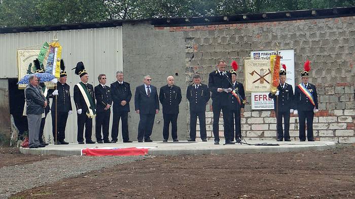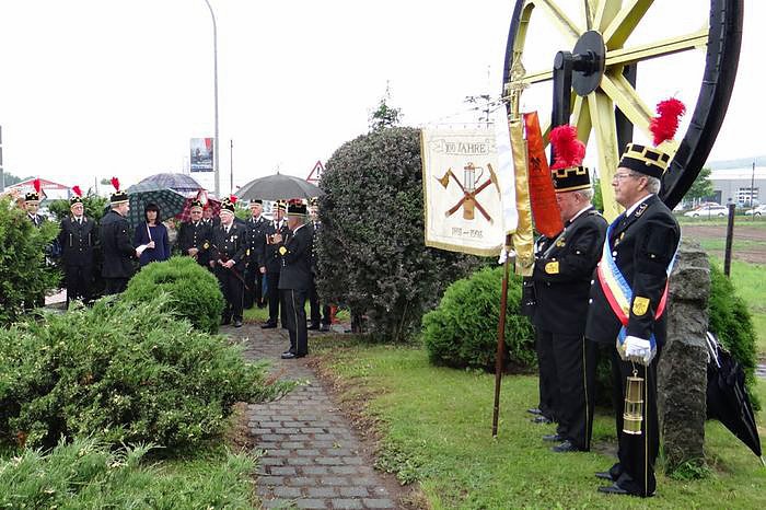 Um 9 Uhr trafen sich die Bergleute an dem technischen Denkmal an der Schachtstraße zu einer Kranzniederlegung. Es wurde den verunglückten Bergkameraden gedacht. Die Bergmannskapelle spielte dazu angemessene Musik.