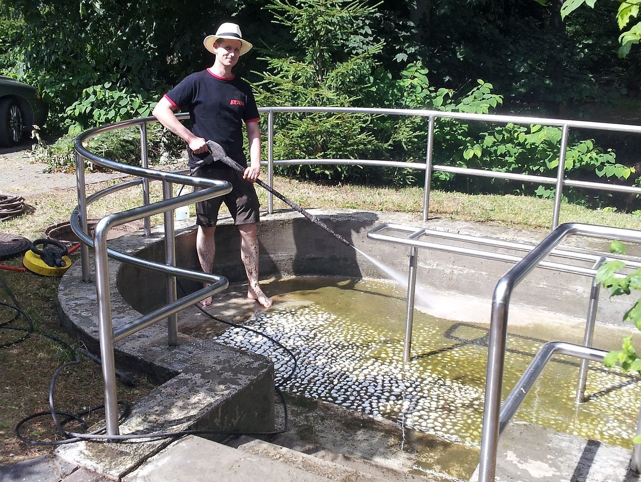 Autor: redOhne große Worte stand er in der vergangenen Woche mit seinem Hochdruckreiniger im Wassertretbecken am Kurpark, um dieses von Schmutz und Algen zu befreien. Dank der Technik gelang das auch ausgezeichnet, so dass im Anschluss daran frisches Wasser eingelassen werden konnte.