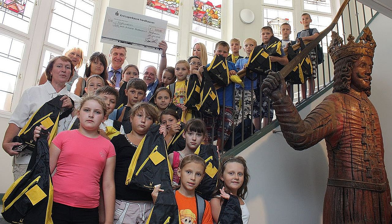Im Namen der Stadt überreichte Oberbürgermeister Dr. Klaus Zeh eine Spende von 500 Euro für den Aufenthalt der Kinder. Darüber hinaus gab es noch einen kleinen Nordhausen-Rucksack.