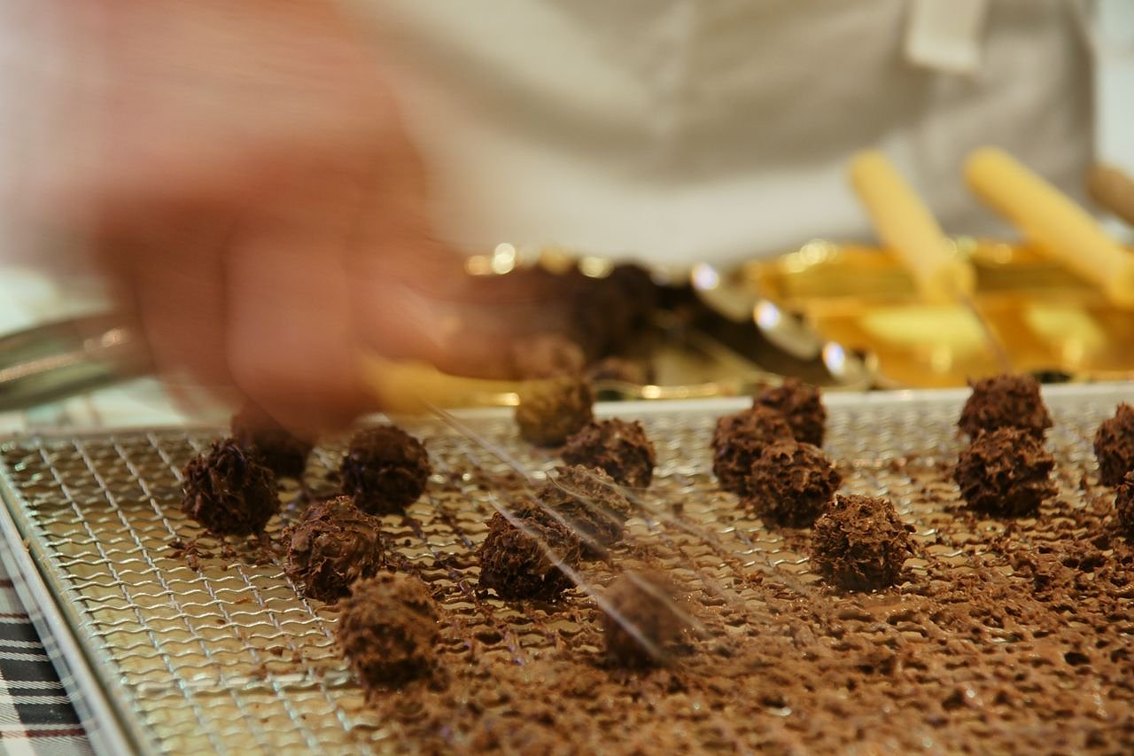 Durch das Drehen mit geschickter, flinker Hand bekommen die Minitrüffel ihr attraktives Aussehen.