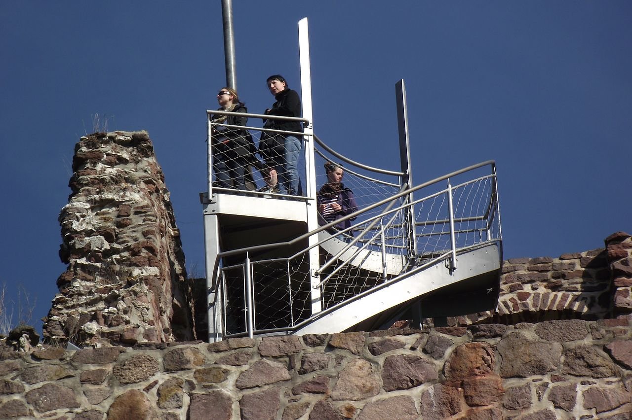 Wer noch höher hinauf wollte, bestieg die Aussichtsplattform der Burg (unser Bild), was den Blick in das Land noch weitete. Nach all dem Auf und Ab, Hin und Her konnte sich stärken, wer Hunger oder Durst verspürte. Mit einer Gulaschsuppe für fünf Euro oder einem Bier im Freien. Wer mehr wollte, suchte die Burggaststätte auf.