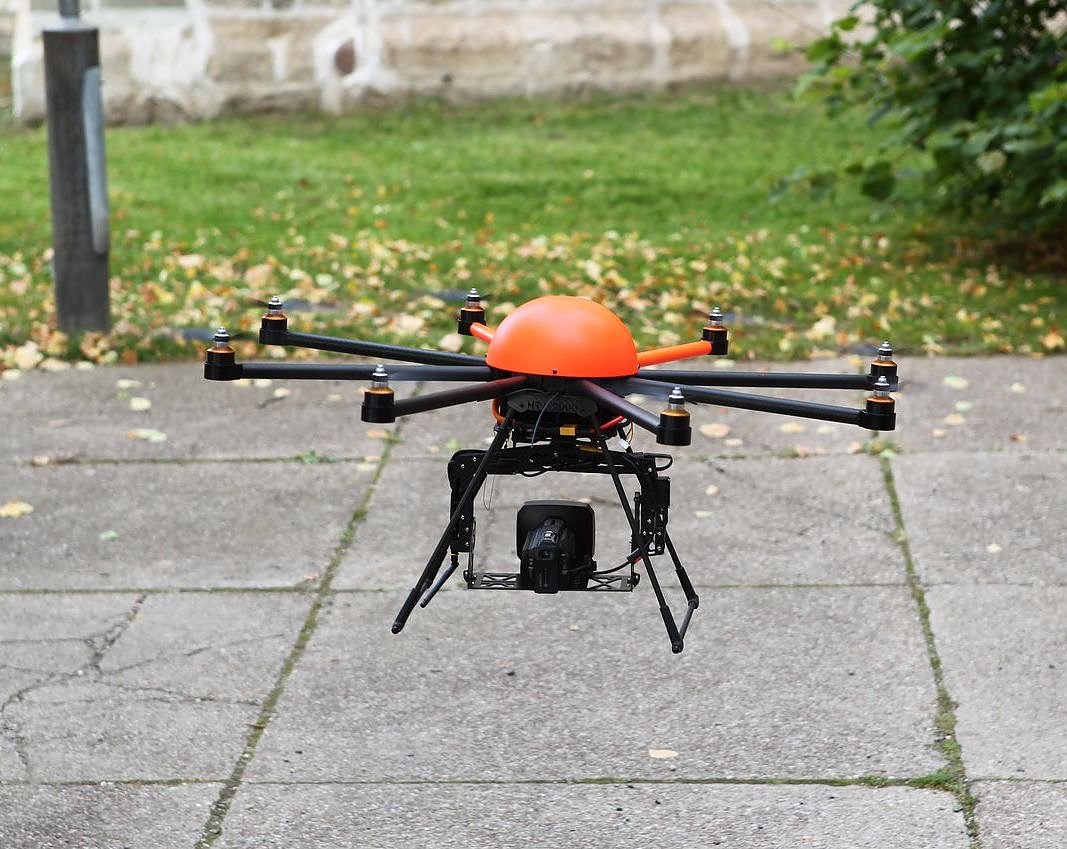 Auf den ersten Blick sieht es aus, als ob eine überdimensional große Spinne durch die Luft fliegt. Doch keine Angst: Das, was da über Sie hinwegfliegt, ist weder ein übergroßes Insekt noch ein UFO. Es handelt sich lediglich um den Flugroboter des Nordhäuser Fotostudios von Ronald Kötz. Der sogenannte Octocopter ist ein unbemanntes Fluggerät, das mit einer daran befestigten Kamera in der Lage ist, Fotos und Videos von Industrieanlagen aus der Luft aufzunehmen.