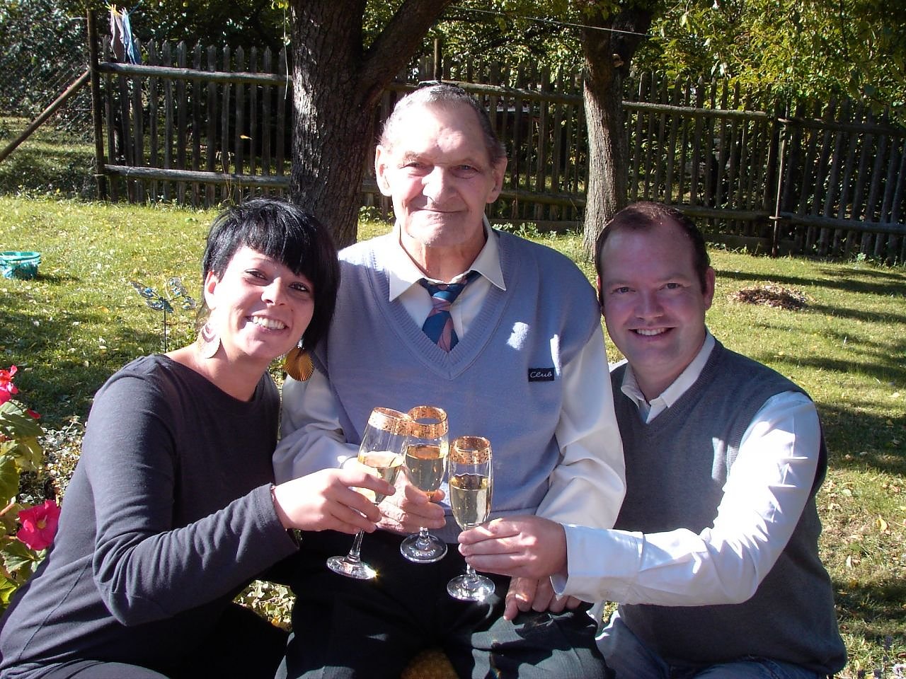 Das erste Jahr des Pflegedienstes Hainleite in Nohra ist nun erfolgreich gemeistert. Die Pflegedienstleitung Renè Griesel und Anika Katzmann ließen es sich nicht nehmen, mit dem einst ersten zu versorgenden Patienten gemeinsam das Glas zu heben.