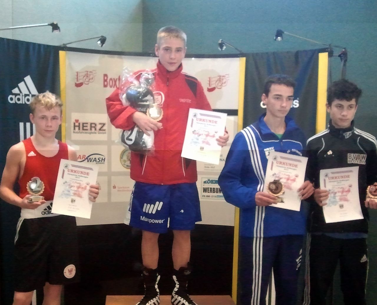 Nikita Fokin hatte Lospech und verlor gleich im ersten Kampf gegen den Teilnehmer der Kadetten Europameisterschaften Denis Foos vom Landesverband Baden-Württemberg nach Punkten. Gennadij Tabler gewann sein erstes Gefecht gegen den Dänen Mikkel Kjaer ebenfals 3:0 nach Punkten. Richard Meinecke bekam es mit Edgar Ullmann vom Landesverband Niedersachsen zu tun. Richard bestimmte das Gefecht klar und konnte auch einige Härtetreffer setzen, sodass der Kampf vorzeitig zu Beginn der dritten Runde mit einem T.KO Sieg für den Nordhäuser endete.