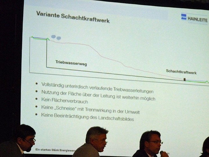 Eines wurde aber klar gesagt, die Verbindungsrohre zwischen den beiden Becken werden übertägig nicht zu sehen sein, so das die Nutzung an der Erdoberfläche nicht beeinträchtigt sein wird. Auch wurde versichert, dass von den Turbinen keine Lärmbelästigung ausgehen wird, weil sie ca. 30 bis 40 Meter unter der Erdoberfläche liegen werden.