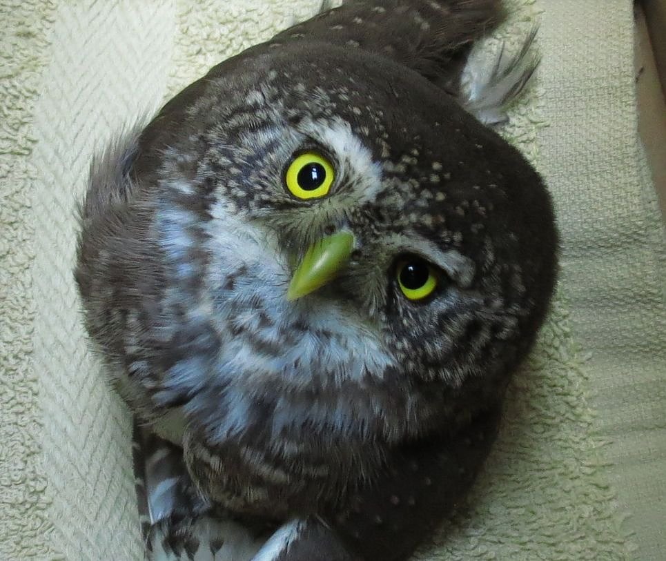 Der Sperlingskauz saß regungslos am Straßenrand bei Braunlage. Es handelte sich offenbar um ein Straßenverkehrsopfer. Äußerlich wirkte der sehr wachsame Vogel unversehrt, nur der linke Flügel hing herunter. Ein aufmerksamer Autofahrer brachte ihn zu Tierärztin Katharina Kohlrusch...