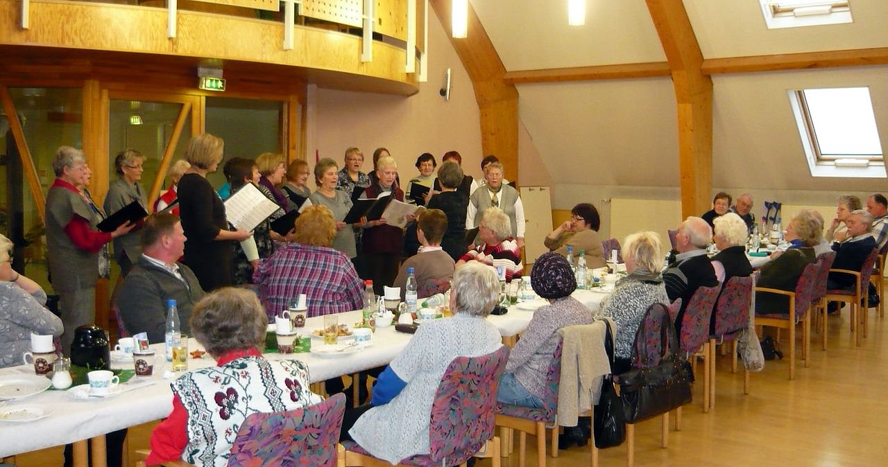 Dann sangen wir auch gemeinsam mit dem Chor Oh Tannenbaum und Am Weihnachtsbaume. Allen hat der Auftritt des Chores sehr gut gefallen, was sich im Applaus zeigte. An dieser Stelle ein Danke an die Damen des Frauenchores Obergebra. Wir ließen uns leckeren Stollen sowie Plätzchen bei Kaffee schmecken. An dieser Stelle daher auch ein herzliches Dankeschön an die Bäckerei Meyer.