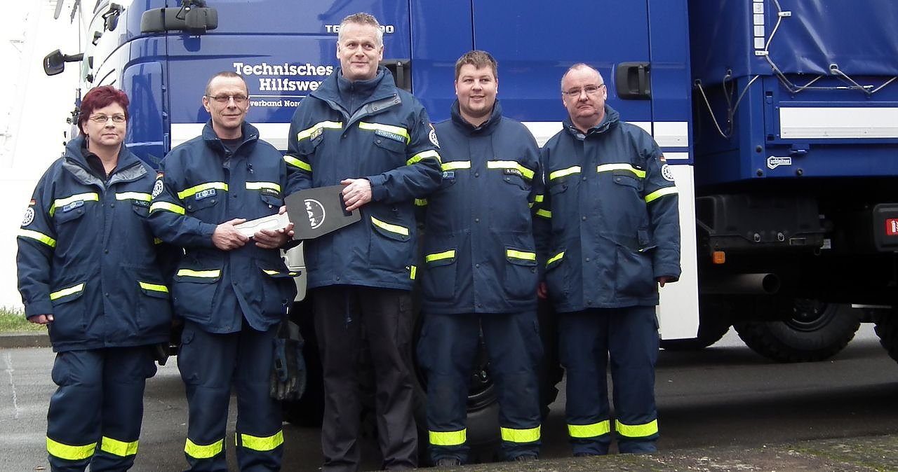 Die Übergabe des Fahrzeugs an den Ortsbeauftragten Robert Klingebiel, die stellvertretende Ortsbeauftragte Andrea Nicolai und Truppführer Marco Fritschka erfolgte am Samstag in Wittlich (Rheinland-Pfalz) beim MAN Truck Modification Center. Zur Aushändigung der Schlüssel waren Herr Strotmann, der Abteilungsleiter Einsatz in der THW-Leitung sowie Jürgen Jakob, Sachbearbeiter Einsatz/Ausstattung aus der Geschäftsstelle Erfurt vor Ort.