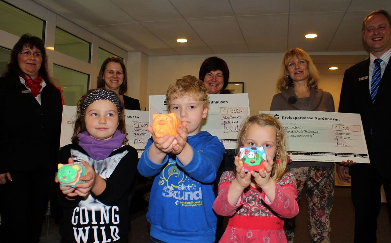 Die Grundschulen des Landkreises prämierten das schönste Sparschwein ihrer ersten Klassen. Anlässlich des Weltspartages wurden alle 20 Sparschweinchen der Grundschulen in der Hauptstelle der Kreissparkasse Nordhausen ausgestellt und im Internet auf der Homepage der Sparkasse mit Foto veröffentlicht.
