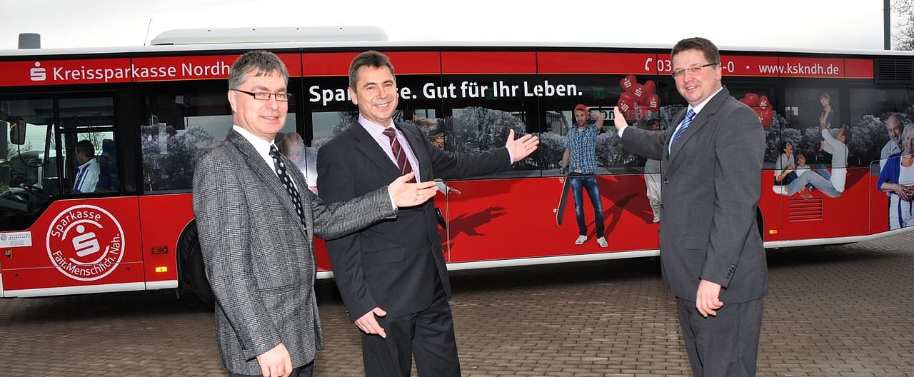 Im Landkreis Nordhausen ist ein neuer Bus der Verkehrsbetriebe Nordhausen unterwegs. Dieser Bus ist der neue Werbeträger der Kreissparkasse Nordhausen. Und so sieht er aus...