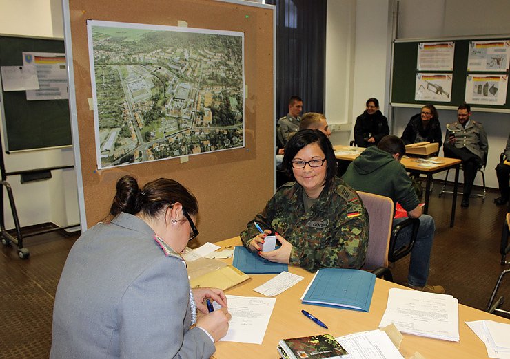 Eine der ersten Anlaufstationen bei der neuen Ausbildung ist die Stabsgefreite Günther (Felduniform), denn ohne Registrierung geht natürlich gar nichts und so herrschte heute im Block 008 der Karl-Günther-Kaserne ein ständiges kommen und gehen.