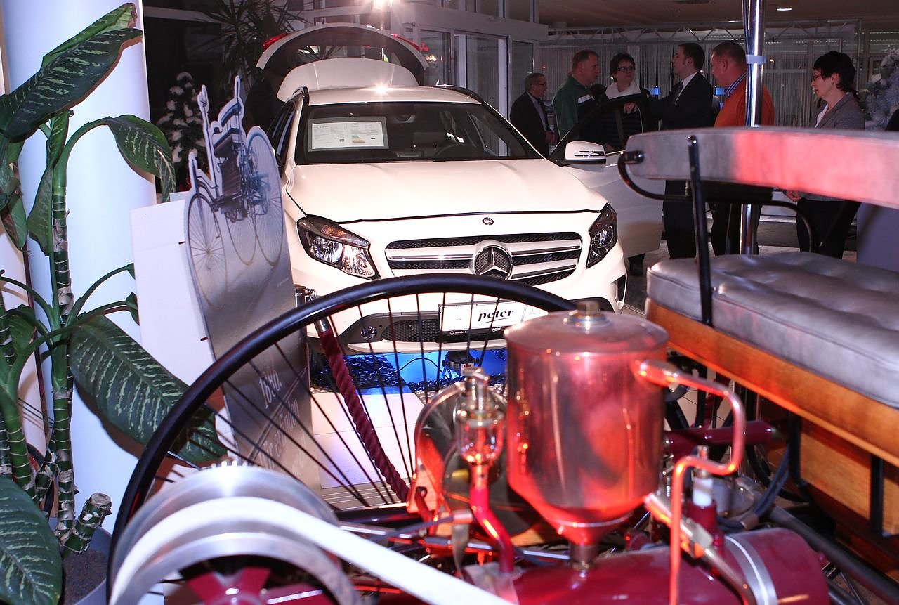 Autor: redVorgänger und Nachfolger: Im Vordergrund der Mercedes Motorwagen - das erste Automobil dieser Welt, dahinter die neueste Stuttgarter Kreaktion: der GLA