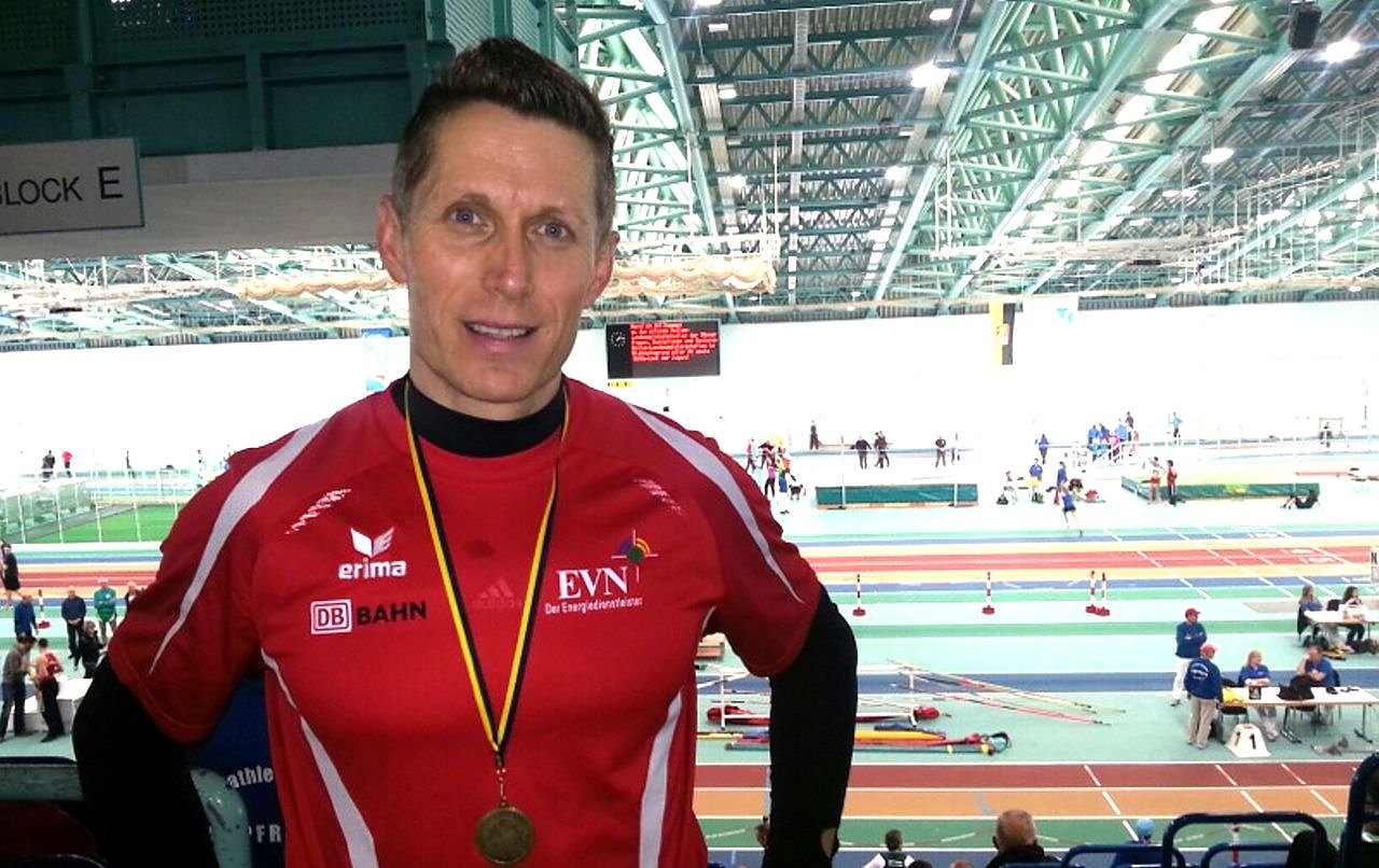 Autor: redIm 60 Meter Sprint galt es für den 38-jährigen Senior seinen Titel aus dem Vorjahr zu verteidigen. In 7,29 Sekunden und neuer persönlicher Bestzeit sicherte sich Bachmann den Sieg in seiner Altersklasse erneut.