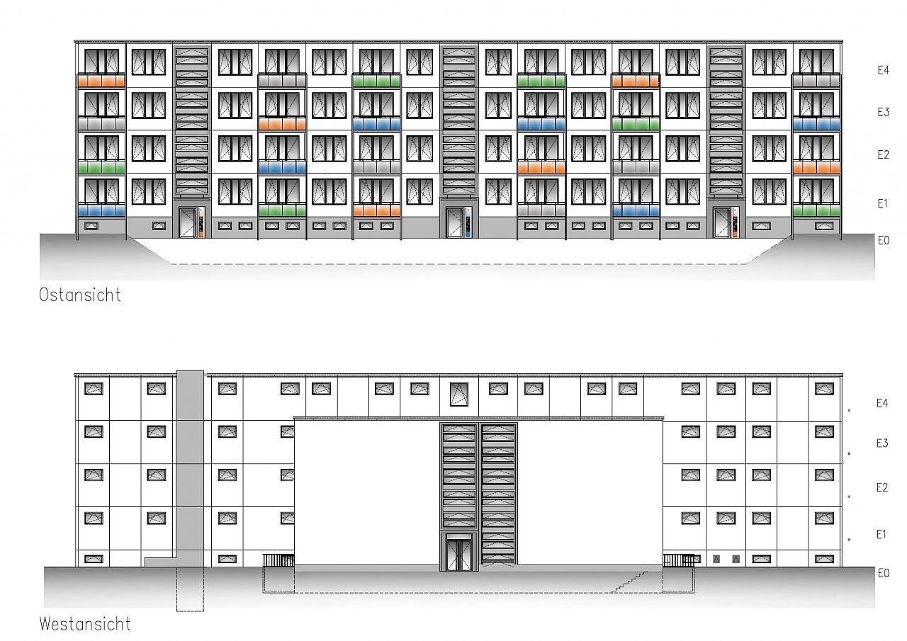 Zu den Anforderungen an den modernen Wohnungsbau gehören nicht nur attraktive Zuschnitte, ein außen angebauter Fahrstuhl oder Balkone, sondern auch das Bauen, um eine möglichst hohe Energieeffizienz zu erreichen. Bernd Schimmel: Wir erzielen bei der Sanierung die Vorgaben der gültigen Energieeinsparverordnung für Neubauten. So wird hier ein sogenanntes KfW-Effizienzhaus 100 entstehen.