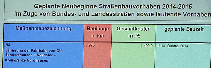 Autor: khhWie kn gestern bereits im Rahmen der Berichterstattung zur Diskussionsrunde Verkehrsinfrastruktur (Veranstaltung des CDU) Ortsverbandes Sondershausen) berichtet hatte, müssen an der Bundesstraße 4 zwischen der Ortsumfahrung B Sondershausen und der Kreisgrenze zwischen Nordhausen und Kyffhäuserkreis Baumaßnahmen durchgeführt werden.