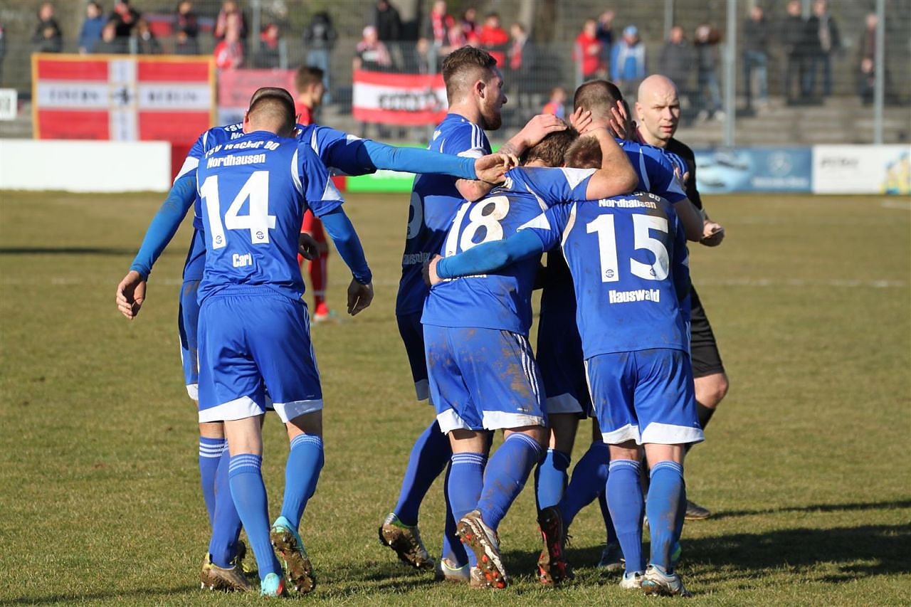 Der Beginn der zweiten Halbzeit dürfte gut 700 Zuschauern im Stadion allerding wie ein kleines Déjà-vu-Erlebnis vorgekommen sein. Berlin machte wieder Druck, hatte anfangs die besseren Möglichkeiten. Doch Nordhausen kämpfte sich auf dem tiefen schweren Rasen ins Spiel, sorgte nach einer schönen Kombination von Jan Löhmansröben, der von rechts zu Martin Hauswald passte, der seinerseits noch einmal nach außen auf Christoph Rischker ablegte, welcher sich dann im 16er mit tollem Abschluss gegen Berlins Sebastian Patzler durchsetzte, für die Vorentscheidung (3:1, 76. Minute).