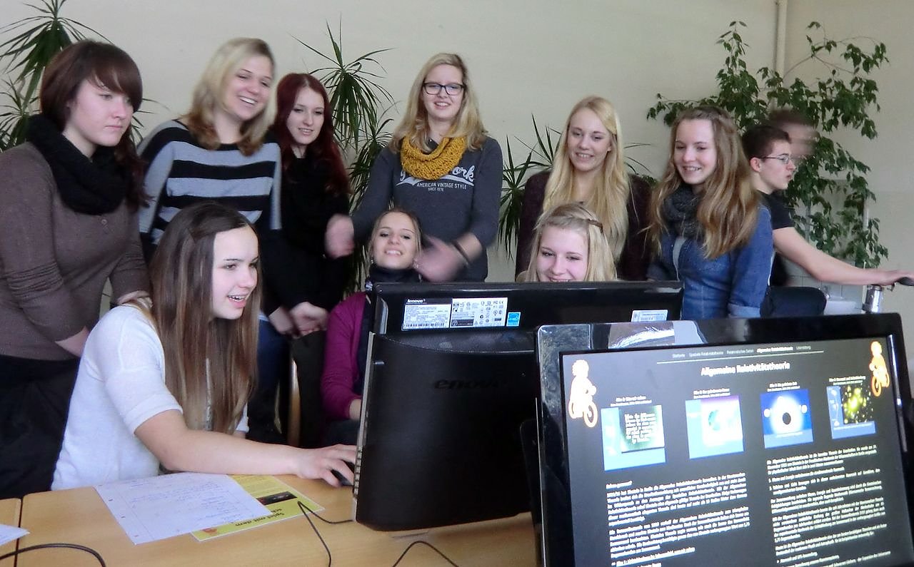 Der durch Stiftungen finanzierte mobile Unterricht erklärt durch interaktive Exponate einige Effekte der Speziellen und Allgemeinen Relativitätstheorie. An sechs PC-Stationen erfahren die Schüler Interessantes zur Lichtablenkung durch Massen.