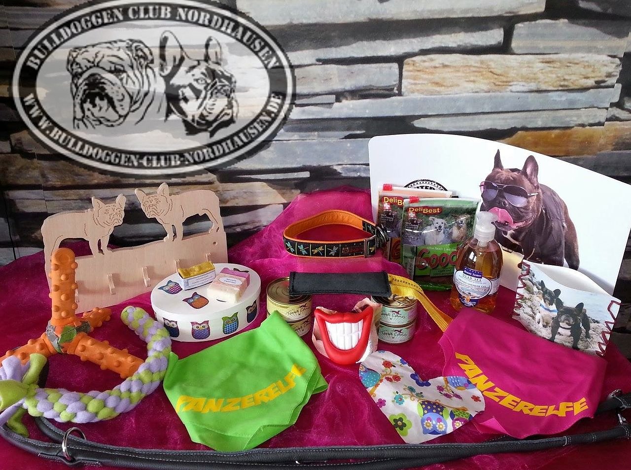 Schnell waren sich die Mitglieder des Bulldoggenclubs einig hier zu helfen und packten ein Paket für Hund und Herrchen oder Frauchen, das nun versteigert wird. In dem Paket sind unter anderem ein Leinenhalter, eine Rundlederleine und ein Halsband, eine Napfunterlage ganz stilecht mit einer Bulldogge aber auch Spielzeug für den vierbeinigen Liebling.
