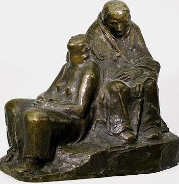 Käthe Kollwitz: Zwei wartende Soldatenfrauen - Bronze mit brauner Patina, 1943.Letzte Plastik vor der Evakuierung nach Nordhausen.